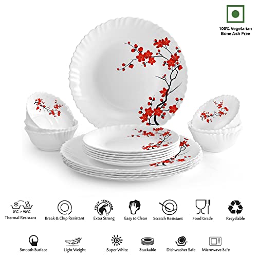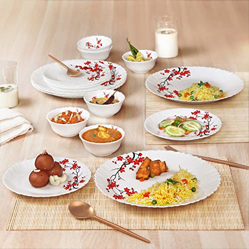 Cello Opalware Dazzle Cherry Blossom Dinner Set, 18Pcs, White