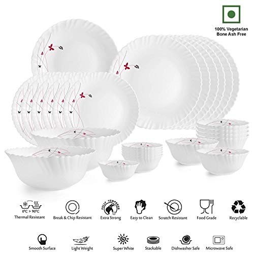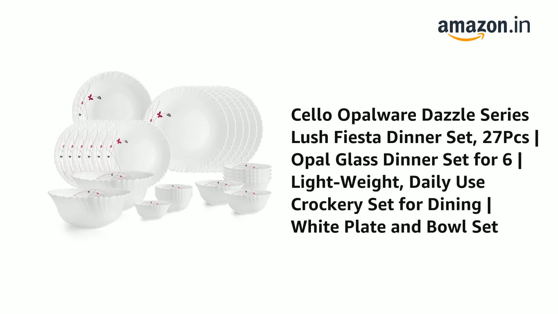 6-Pieces Full Plate(10 inch) 6-Pieces Quarter Plate(7 inch) 6-Pieces Veg Bowl (150ml- 4 inch) 6-Pieces Soup Bowl(6 inch) 2-Pieces Serving Bowl(7 inch) 1-Piece Round Platter(11 inch)