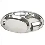 Dynore Best Quality Stainless Steel Lunch/Dinner Plate is a perfect Bhojan Thali having 4 compartments This Stainless steel Plate comes with 4 compartments All compartments are of different sizes which can accommodate different types of food like chapati/salad/pickle or sweet. This plate with four compartments is perfect for incorporating new recipes and a balanced diet food grade stainless steel no sharp edges to hurt sturdy and durable This eco-friendly plate will save your money and the environment by avoiding buying disposable plates Product Dimension- 30x30x2.5 cm