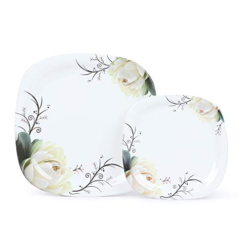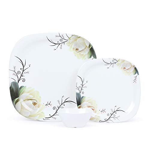 Golden Fish Melamine Square Full Dinner Plates Quarter Plates & Veg. Bowl || Mini Dinning Set (Pack of 18 Floral Print) (GF-F-QPB-4-18)