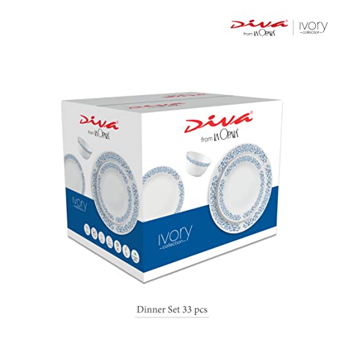 La Opala Diva Ivory Collection Opal Glass Dinner Set 33 pcs Grace Red White