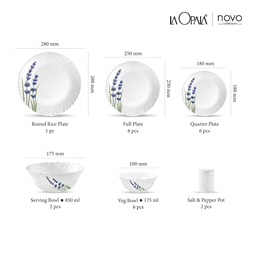 La Opala Novo Collection Opal Glass Dinner Set 23 pcs English Lavender White