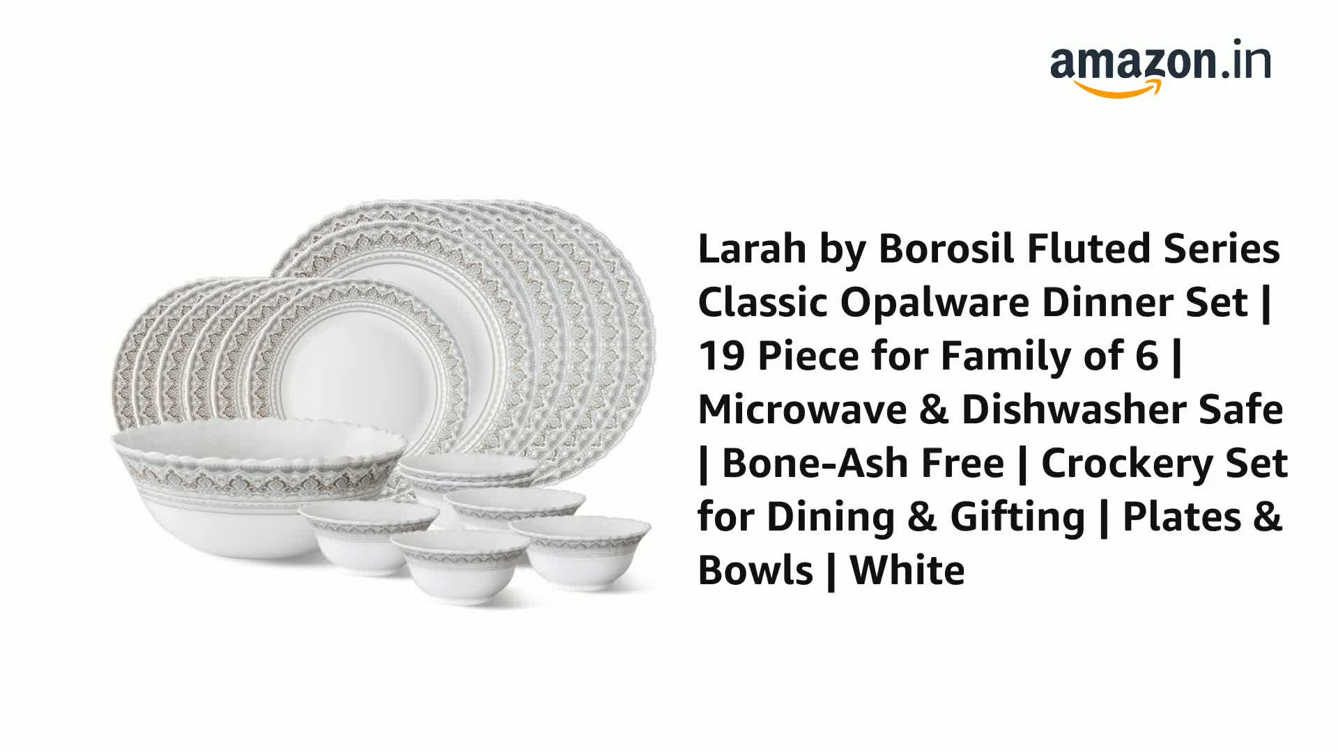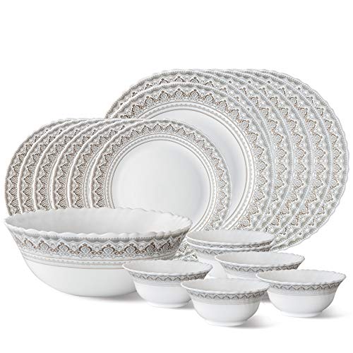 Item Package Quantity:19Larah by Borosil presents Opalware sets with elegant designs. Opalglass is 100 percent bone ash free thus fit for vegetarians. It is also light weightt and chip resistance making is suitable for daily use.