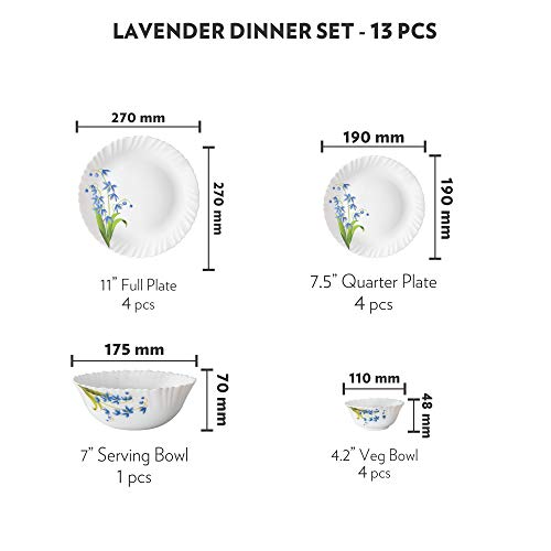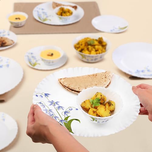 Larah by Borosil presents Opalware sets with elegant designs. Opalglass is 100 percent bone ash free thus fit for vegetarians. It is also light weightt and chip resistance making is suitable for daily use.