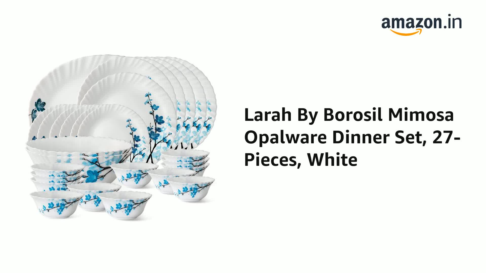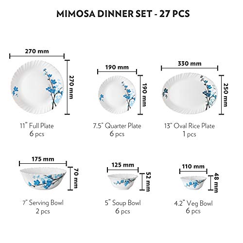 Larah By Borosil Mimosa Opalware Dinner Set 27-Pieces White