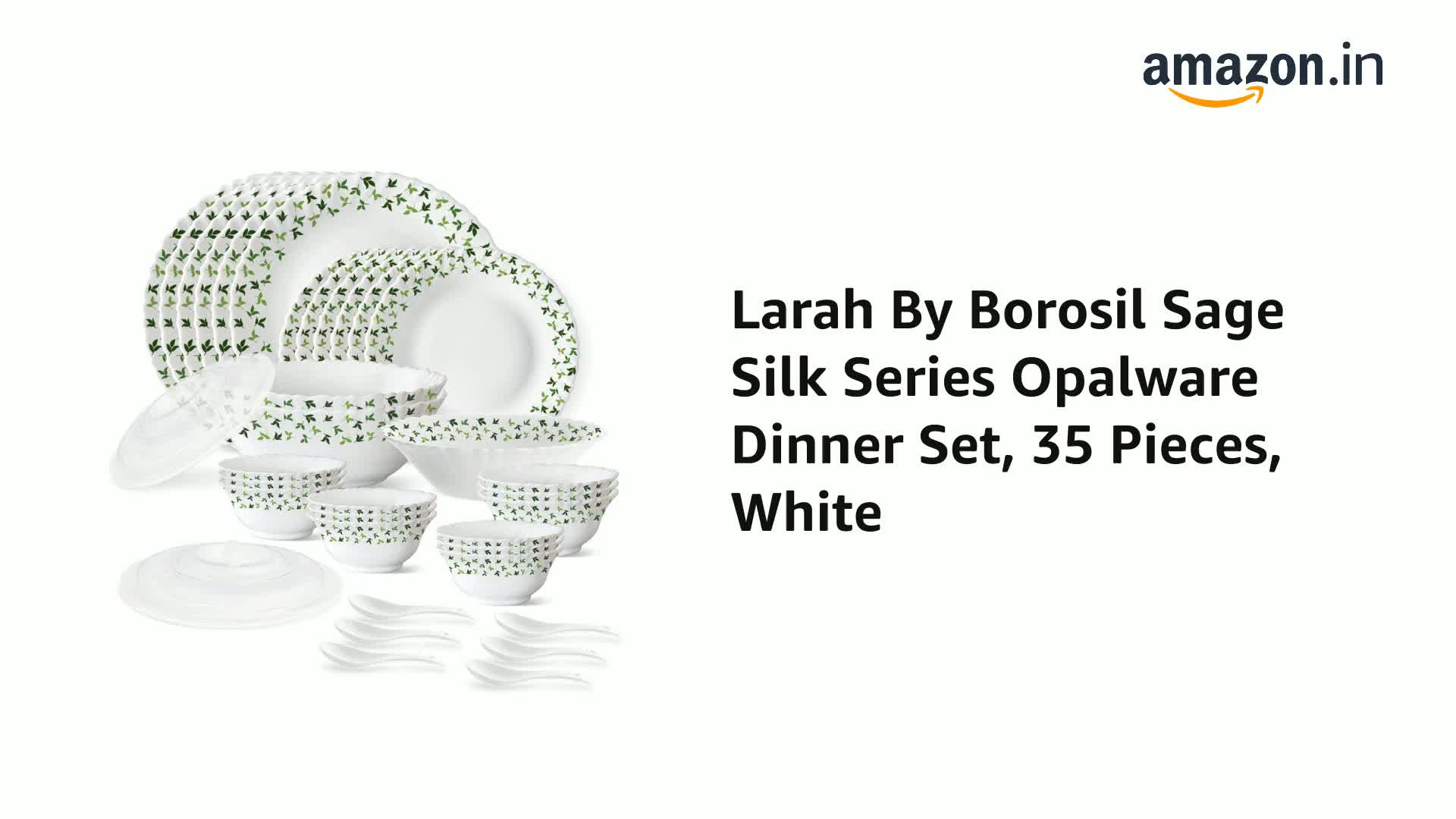 Larah By Borosil Sage Silk Series Opalware Dinner Set 35 Pieces White