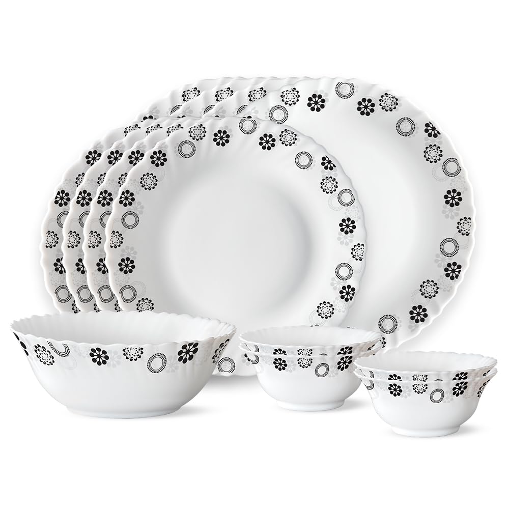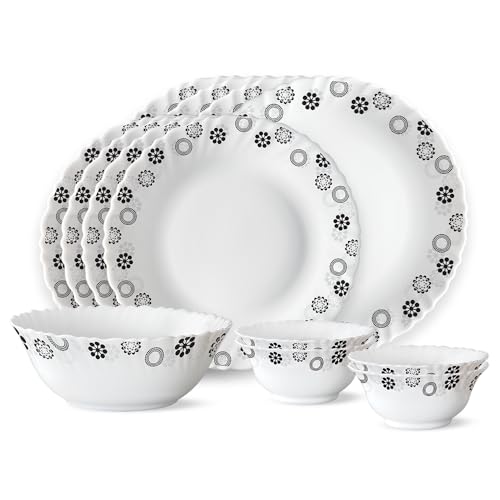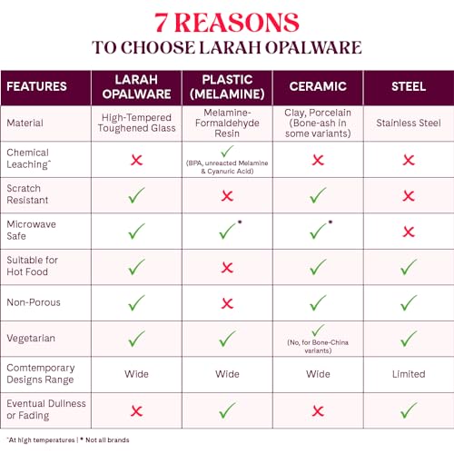Larah by Borosil presents Opalware sets with elegant designs. Opalglass is 100 percent bone ash free thus fit for vegetarians. It is also light weightt and chip resistance making is suitable for daily use.