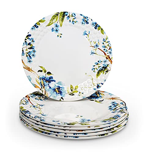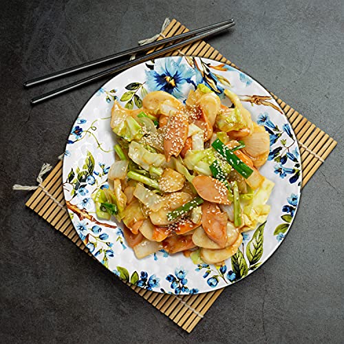Melamine Dinner Full Size Plates Set of 6, Unbreakable Plates (6 Pieces, 11 inches) (Floral - White)