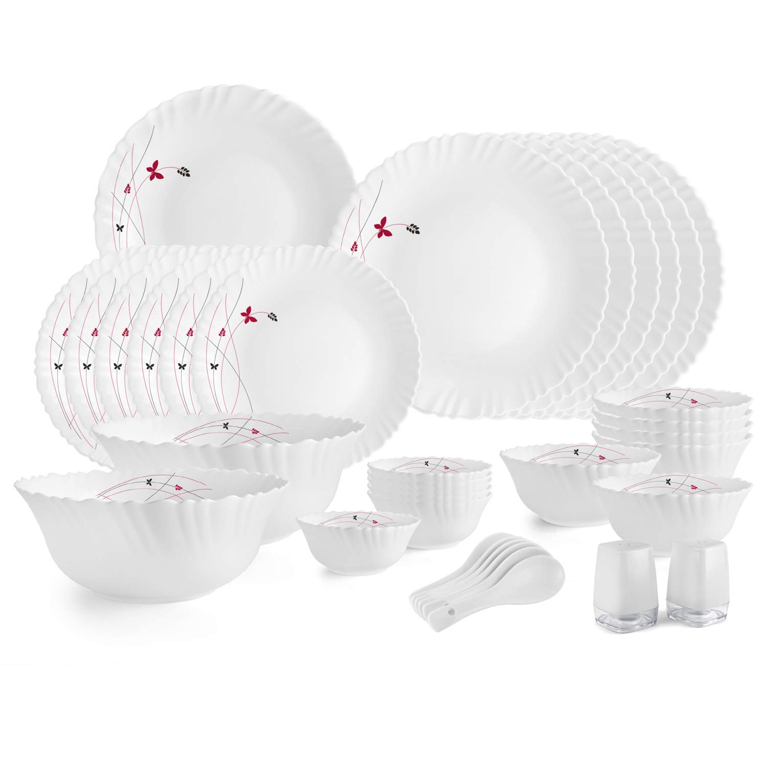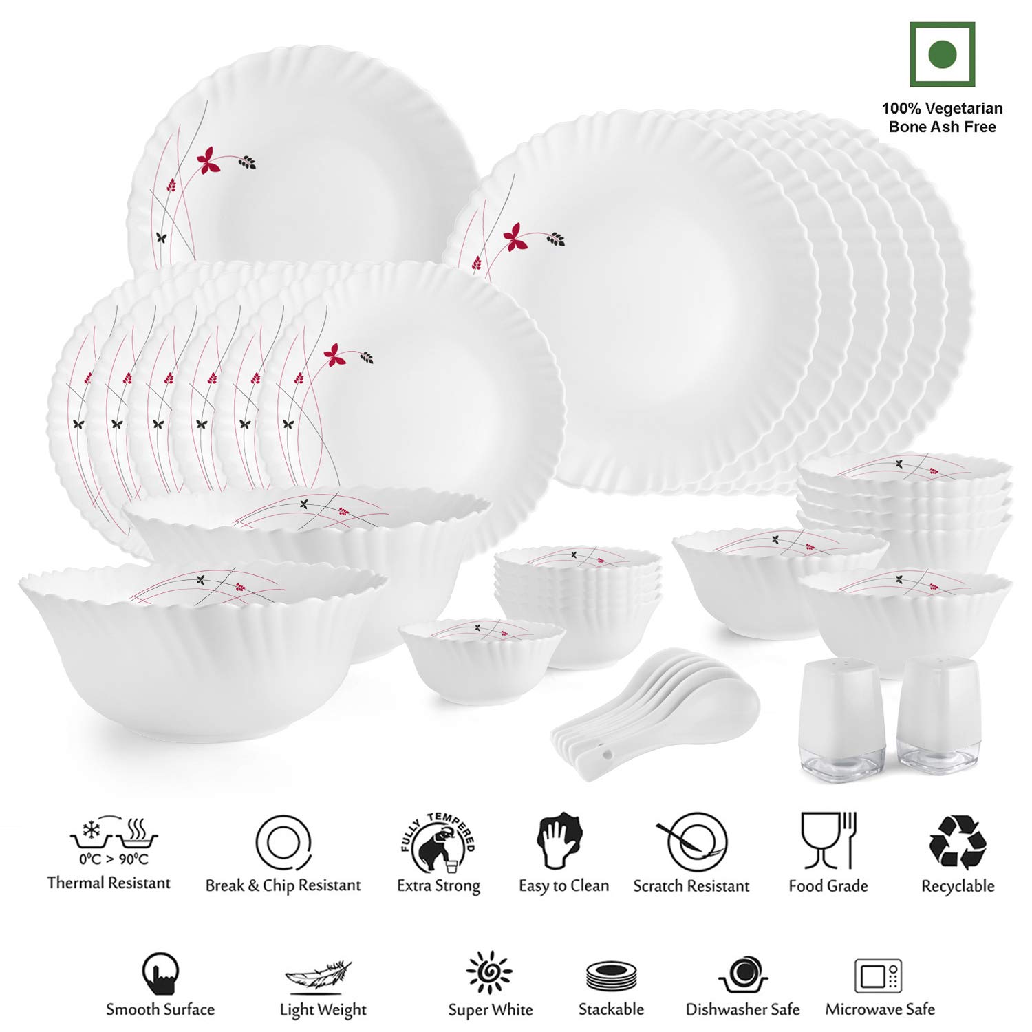 HomeKitchenDining setsDinnerware SetsOpalware Dazzle Series Lush Fiesta Dinner Set, 35 Units | Opal Glass Dinner Set for 6 | Light-Weight, Daily Use Crockery Set for Dining | White Plate and Bowl Set