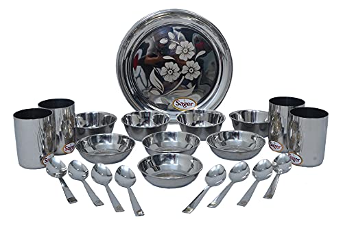 SAGER® Platinum Collection 24 Pcs Stainless Steel Dinner Set- Heavy Laser Finish