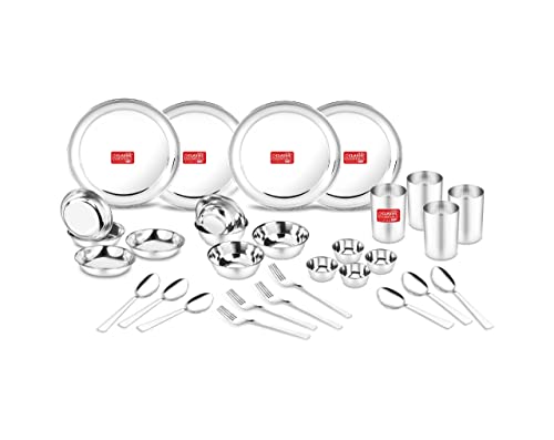 Stainless Steel Dinner Set of 32 Pcs | Kitchen Set for Home | Heavy Gauge | Serving of 4 - Plain