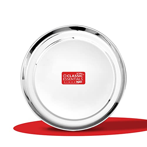 package contents: 4 pcs: full plate (diameter: 29 cm) 4 pcs: curry bowls large ( diameter: 10 cm)4 pcs: chatni katori ( diameter: 5 cm)4 pcs: dessert dish (diameter: 11 cm)4 : glass ( height: 10 cm) ( capacity: 250 ml )4 pcs: desert spoon (length: 18 cm)
