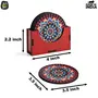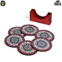 HomeKitchenDining setsCoaster SetGift Kya De Gkd Coaster Set Of 6 Beautiful Wooden Coasters With Proper Coaster Stand Designer Coaster Set Fit For Tea CupsCoffee Mugs&Glasses (Round&Designer 3.5X3.5 Inch) (Black)