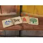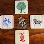 "IVEI - ""I Value Every Idea"" is a society working towards the upliftment of artisans in Sitapur Uttar Pradesh. We work towards a long term aim of providing employment and sustainable living solutions to the people here. Our designers work with rural artisans to create well designed high quality utility products for home and office ideal for both gifting and personal use. Handicrafts of Uttar Pradesh is a group of handicraft lovers from Uttar Pradesh working towards promotion of arts and artisans. This range of products is created in collaboration with them and SAFAR and all funds from the profit of this collection would be donated to a women artisan based self-help group. A set of four wooden coasters made in high quality wood. The coasters are printed with designs inspired by the traditional Sanjhi art from Mathura. These make for a perfect thoughtful gift to your family and colleagues. These can be wiped clean with a wet cloth and can be occasionally washed too. Dimensions (in) : 3.25*3.25*.25 each"
