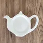 KHURJA POTTERY Ceramic tea bag holder shaped like a teapot complements every tea party and is a thoughtful addition to tea-time. More than being a great decorative kitchen accessory or brunch nook the tea bag holder is fit to serve sugar cubes biscuits or bite-sized savouries. Minimize clean up after tea-time and avoid staining table tops with stir spoons and used tea bags. Made from fine Ceramic crisp white tea caddy is shaped with recesses to catch drips from tea bags and contain any runoff. Enjoy easy mess-free steeping!