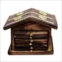MARBLE INLAY ART AGRA - PACCHIKARI Wooden Hut Coaster 6 Coasters in Each Set (11 x 11 cm Brown) -Combo Pack of 2