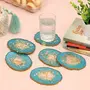 SAHARANPUR HANDICRAFTS Set of 6 Premium Resin Coasters TeaCoffee Coasters Resin Coaster Set Tea Coasters Chai Coasters Oval Coasters Table Accessories (10 * 8 cm) (Blue Gold Flakes)