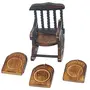 Super India Wooden Antique Hand Crafted Coasters Decorated in Rocking Chair Stand Set of 6 Pcs
