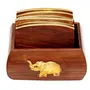 This is a handcrafted wooden Round Shape Coaster set made with Indian rose wood. This vibrant set of six coasters will add a nice sheen to your tea party. The coasters can be placed neatly before and after use through the wooden pole that accompanies it . brings you the traditional art of Indian artists by offering you the most beautiful wooden handcraft products made by the rural artists of India Authentic design. All are made by Rural Artists of India!