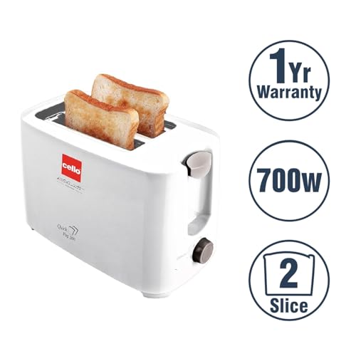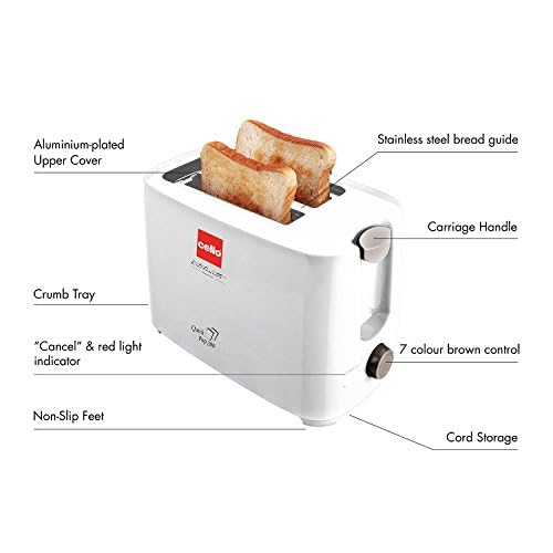 Cello Quick 2 Slice Pop Up 300 Toaster | Aluminium-Plated Upper Cover | Carriage Handle and Cord storage facility | (White) 700 watts