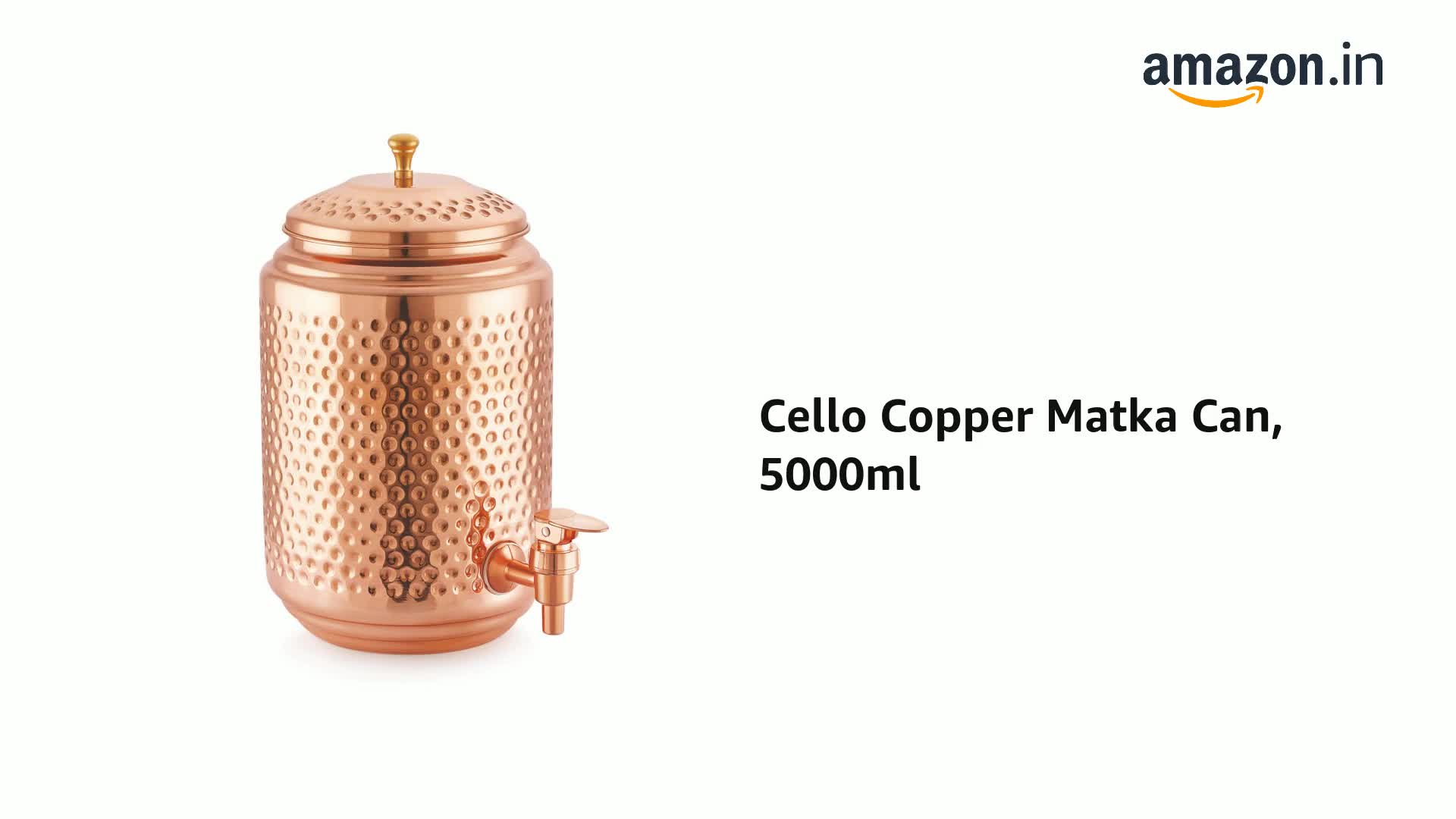 Cello Copper Matka- Ayurveda Inspired |BPA free and non toxic with pure copper |Long lasting and leak proof | Supports Digestive & Liver Health | Helps Enhance Immunity | Used only for water | 5000ml | Copper, Set of 1