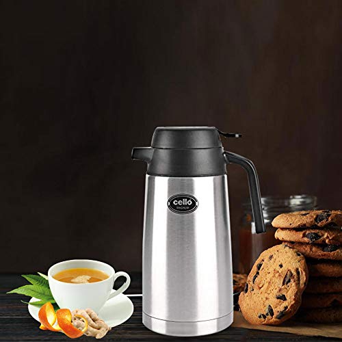 Cello Magnum Stainless Steel Double Walled Carafe, Insulated, 2000ml, 1 Unit, Black