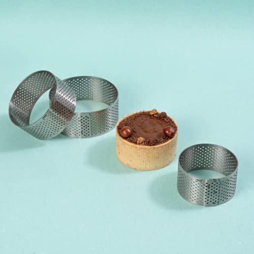 Our Perforated Tart rings are perfect for shortbreads mousse puffs cakes and shortcrust pastries. The rings are dotted with holes to evenly cook the tart edges. The rings are flexible for an easy release and will always return to its original shape. Care : Dishwasher safe reusable and easy to clean. Using stainless steel material of good quality and fine craftsmanship and durable. Premium Material: This tart ring is made of stainless steel reusable durable high temperature corrosion- resistant and not easy to rust. Flexible and durable it always returns to its original shape after use. This perforated tart ring set has a venting hole design and the venting holes are evenly distributed and ventilated without leaking.