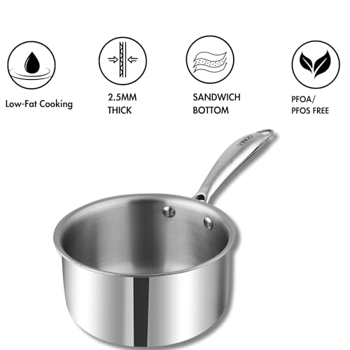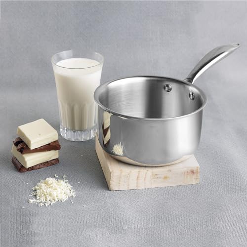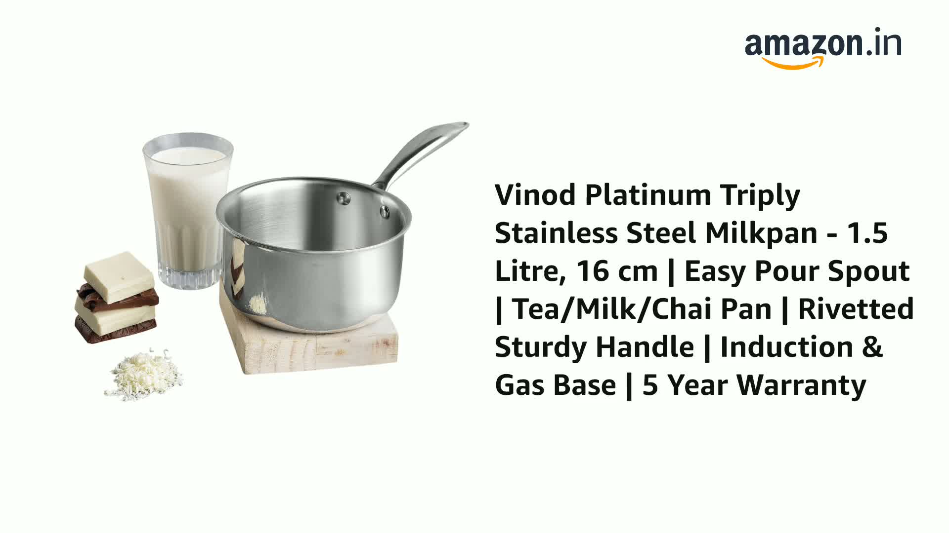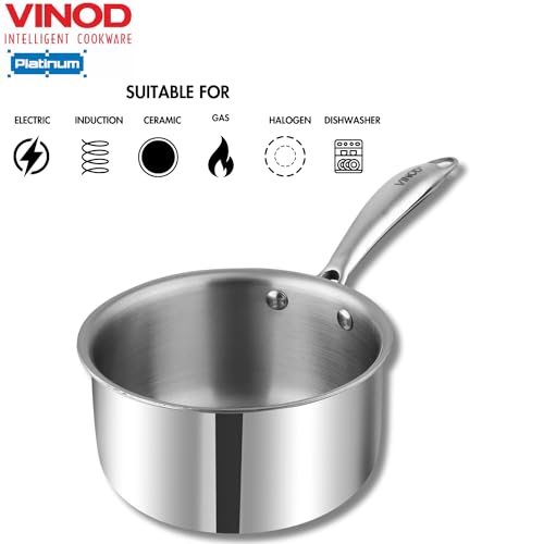 Vinod Platinum Triply Stainless Steel Milkpan - 1.5 Litre, 16 cm | Easy Pour Spout | Tea/Milk/Chai Pan | Rivetted Sturdy Handle | Induction & Gas Base | 5 Year Warranty