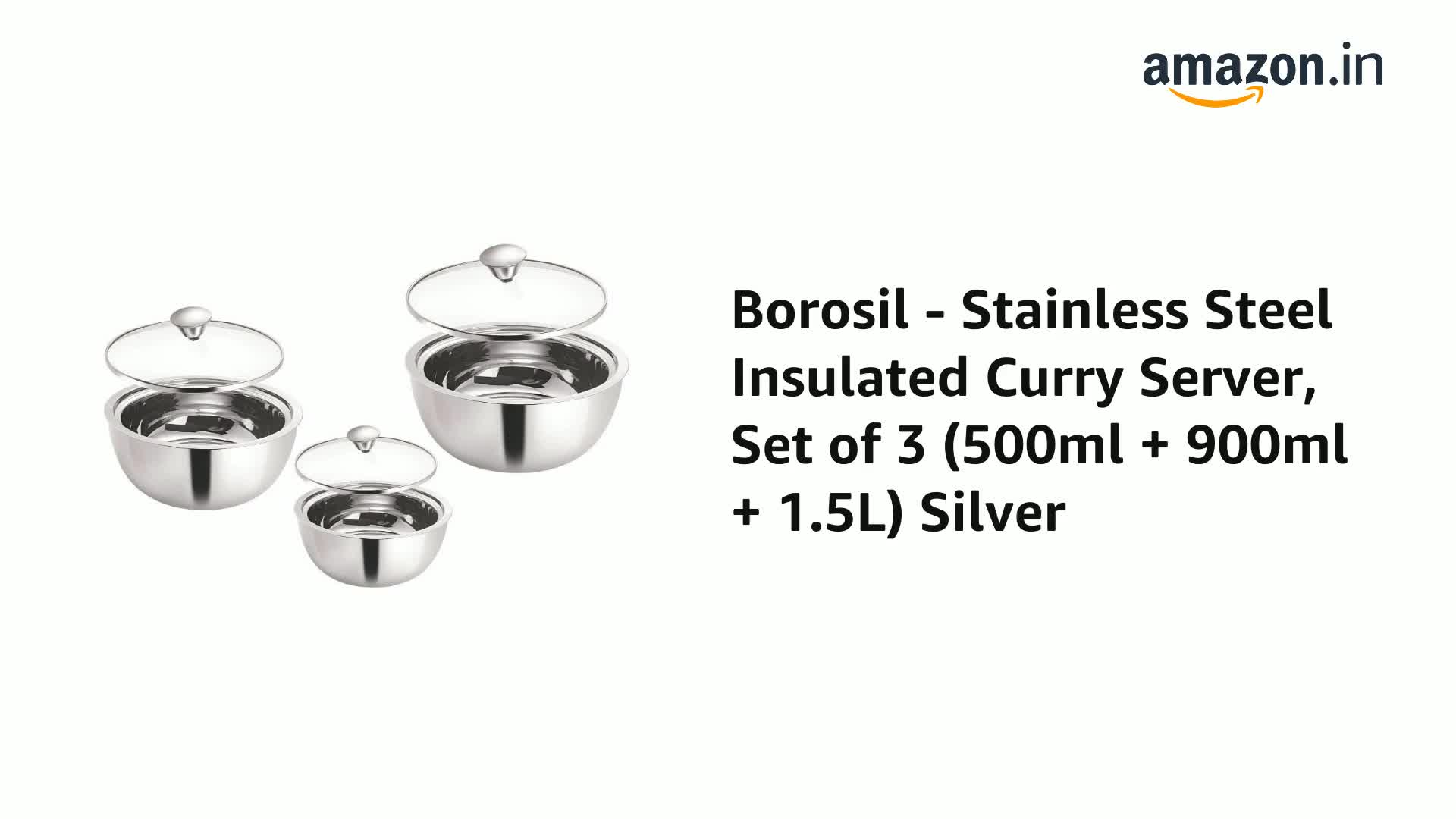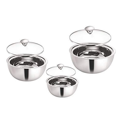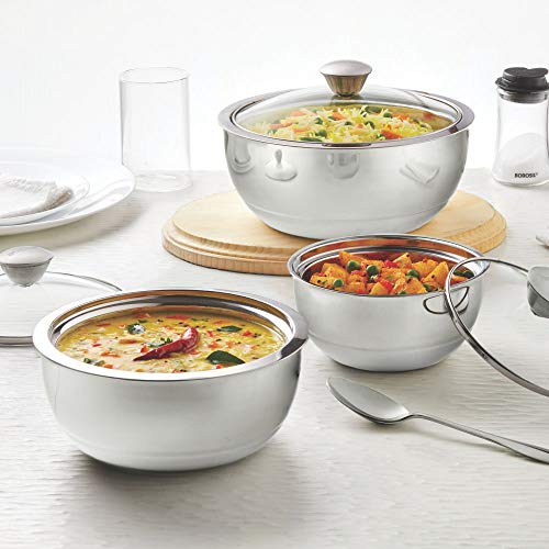 Borosil Stainless Steel Curry Server (Silver, 500ml, 900ml, 1.5L) - 3 Pc Set