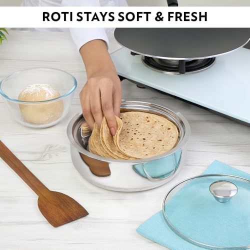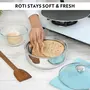 The roti does not remain warm after being stored in the utensil.
