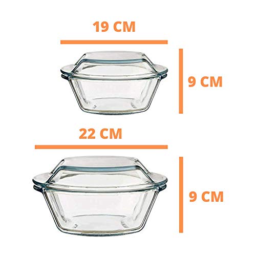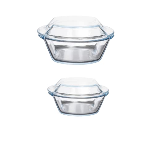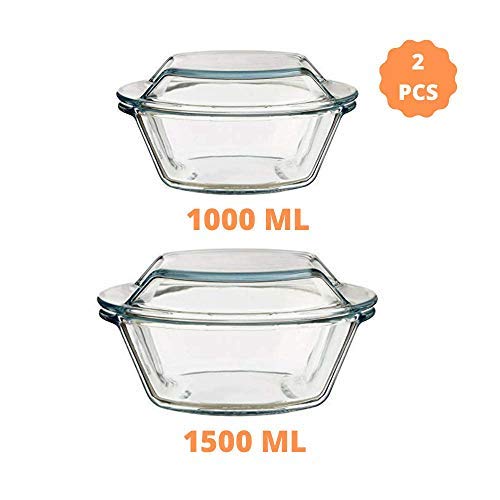 Borosilicate Glass Microwave Safe Casserole for Roti, Chapati, Rice, Curry - 1000ML, 1500ML Set of 2