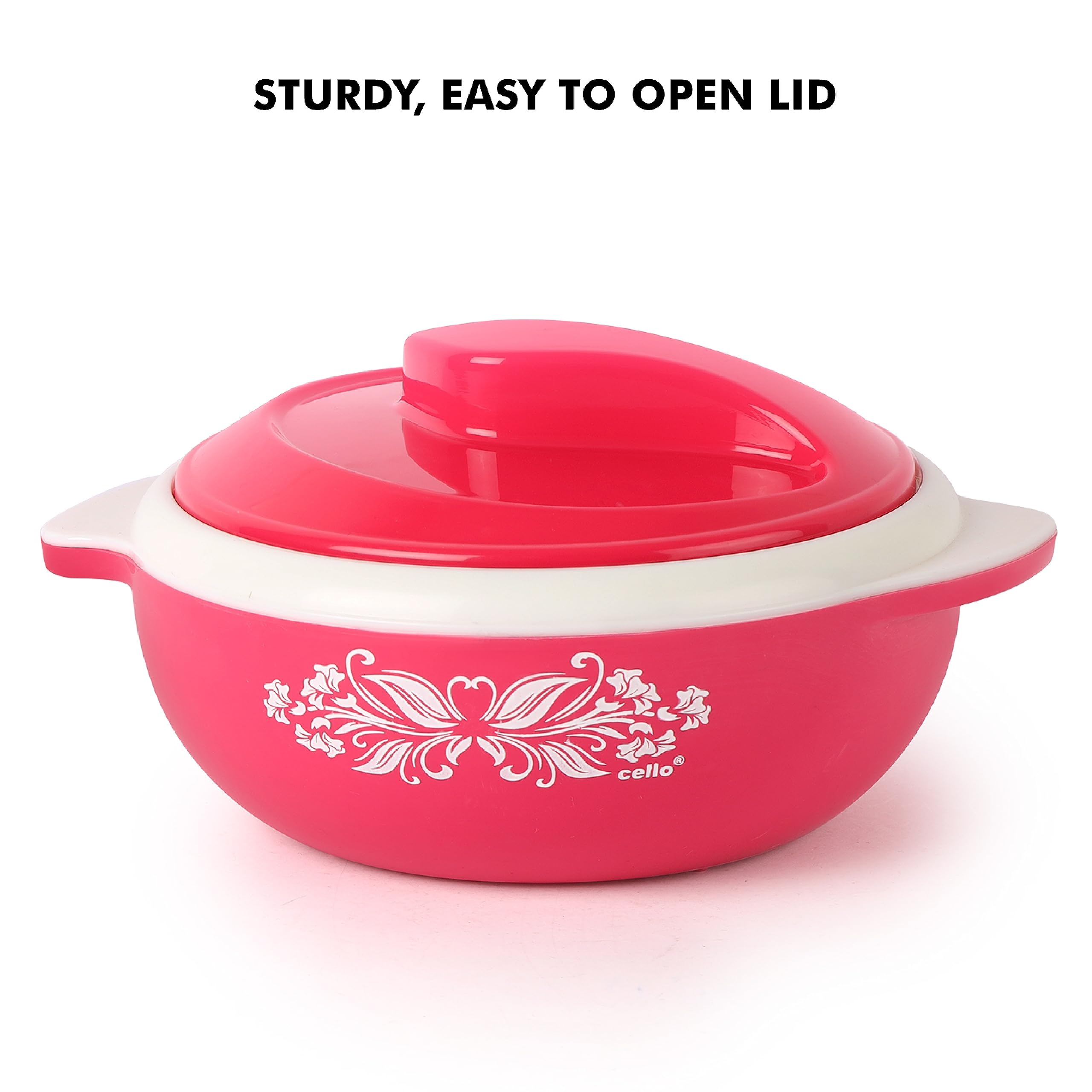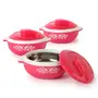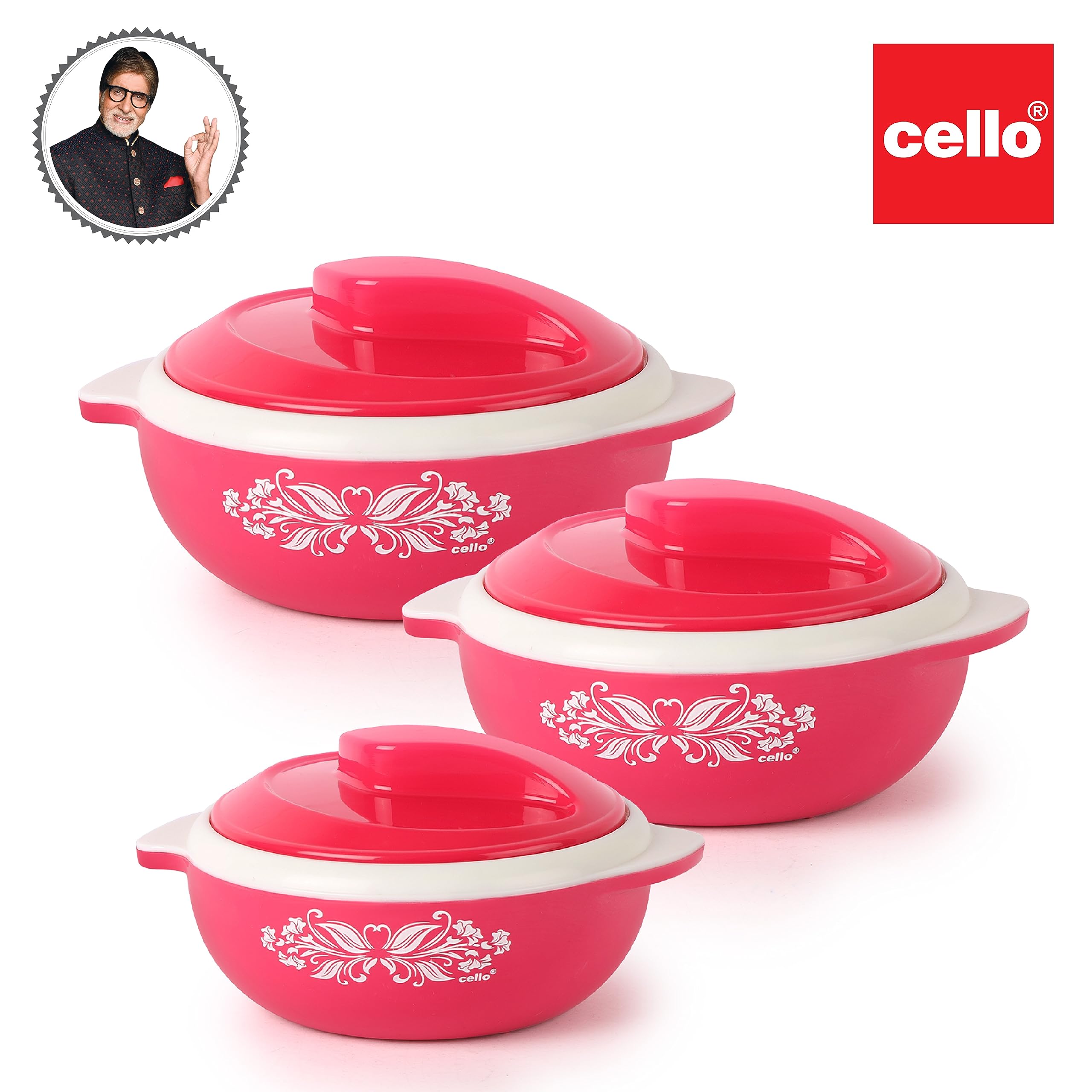 CELLO Hot Serve Insulated Inner Steel Casserole Set of 3, Pink (500ml, 850ml, 1500ml) | Hot Box for Kitchen | Hot Pot | Chapati Box | Locks in The Cold & Heat for Long | Serving Bowl with Lid |