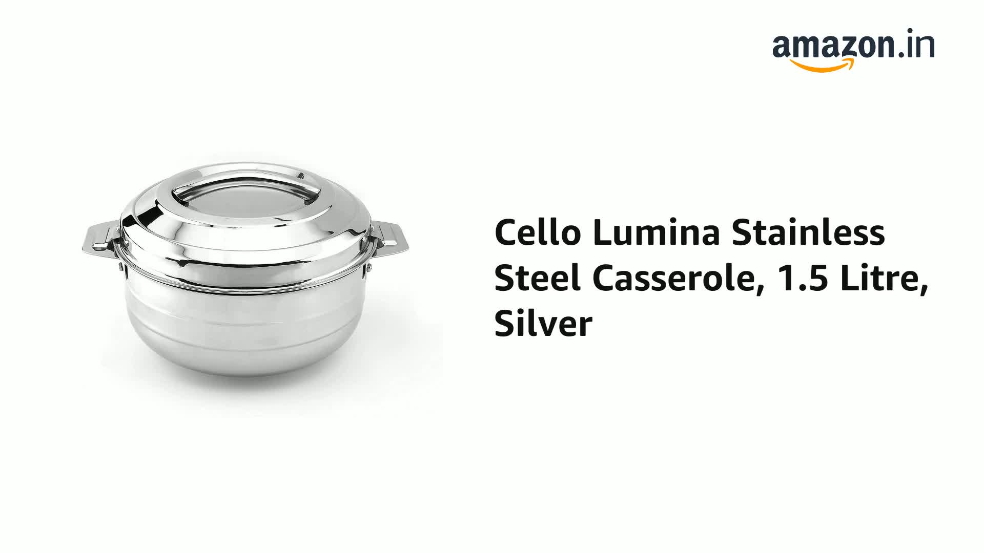 CELLO Lumina Stainless Steel Casserole, Double Walled, 1500 ml, Silver,Solid