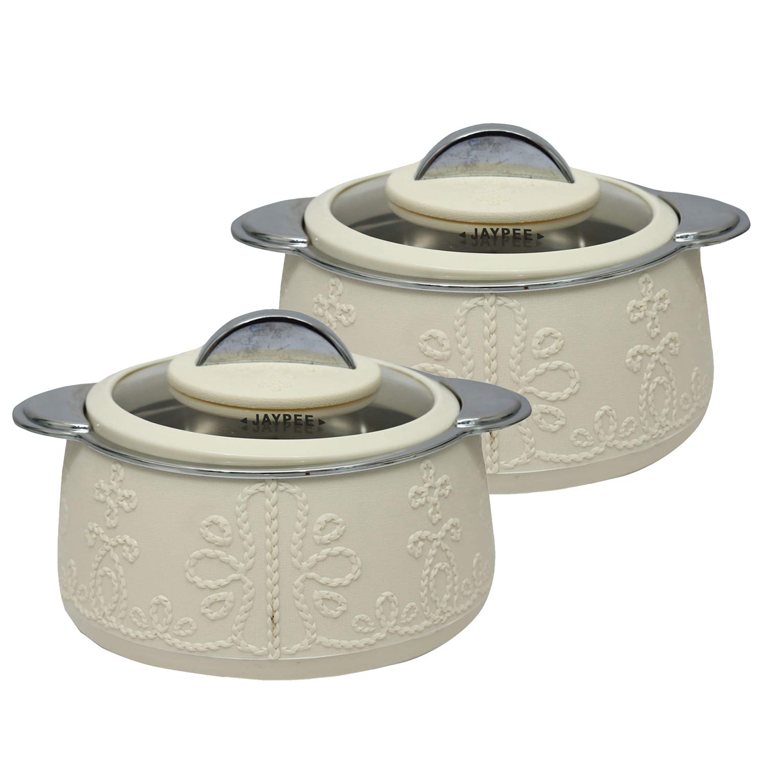 Jaypee Fabrene casserole is crafted out of best materials with elegant crome plated top with knob and a transparent glass lid. Now you can cook & display with pride the appetising food with your fine finish garnish and flourish with special toppings. The inner container is made out of stainless steel. The plastic outer body an inspired with english countryside design first ever range with embroidery- motifs. Material Used: Top-PP Ring-ABS(chrome plated) Base-PP Container-Stainless steel and insulation is of polyurethane material. Food grade BPA Free.