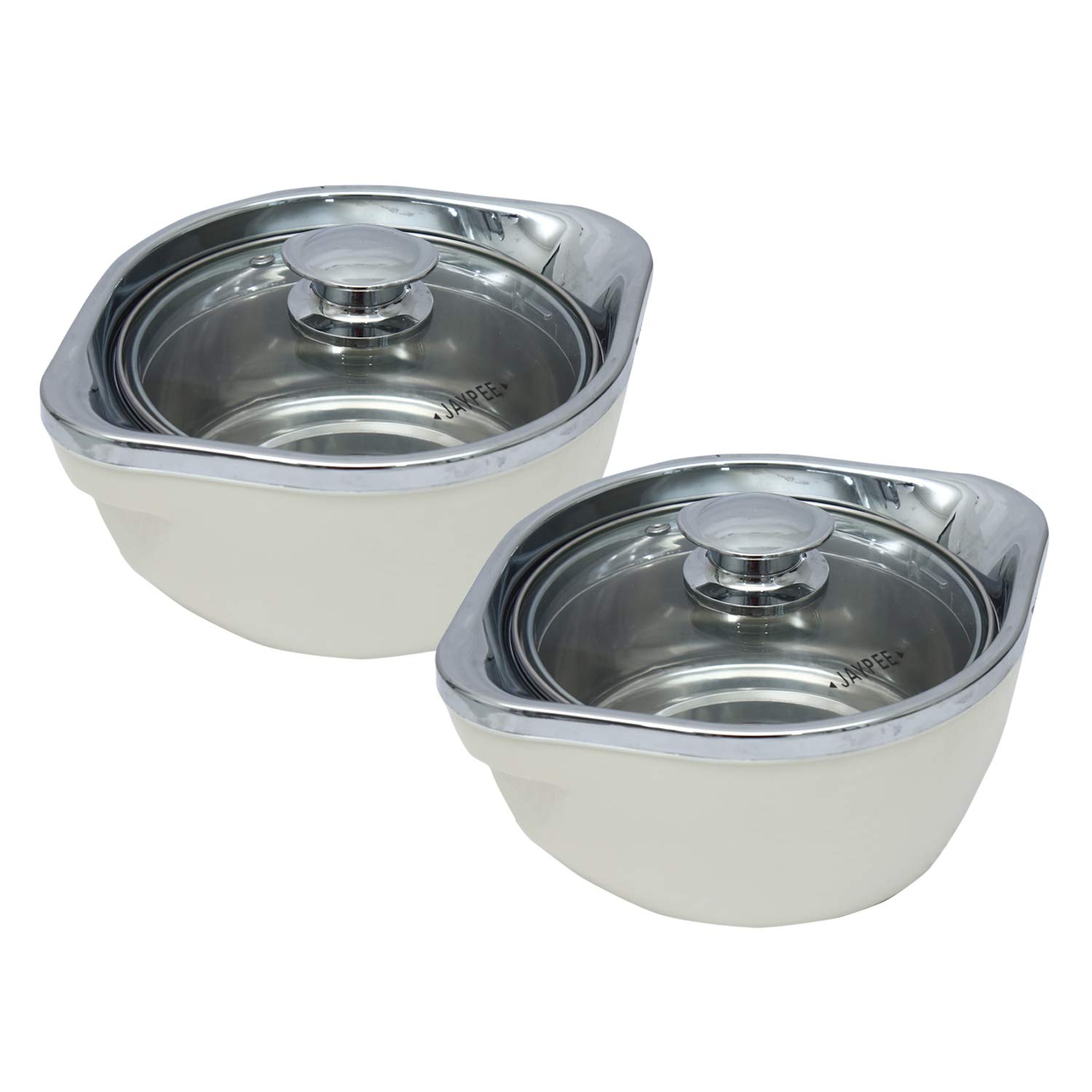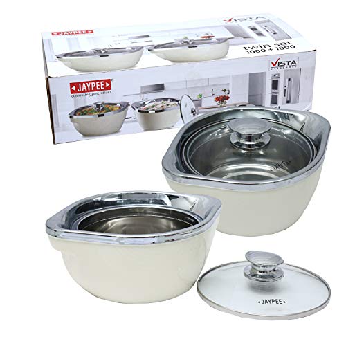 Jaypee Vista casserole is crafted out of best materials with elegant crome plated top with knob and a transparent glass lid. Now you can cook & display with pride the appetising food with your fine finish garnish and flourish with special toppings. A safety hole in the glass lid not only makes it antilock it also lets out the aroma. The inner container is made out of stainless steel. The plastic outer body is of virgin plastic with beautiful graphic exteriors which is inspired by creamic surfaces. Material Used: Top-PP Ring-ABS(chrome plated) Base-PP Container-Stainless steel and insulation is of polyurethane material. Food grade BPA Free.