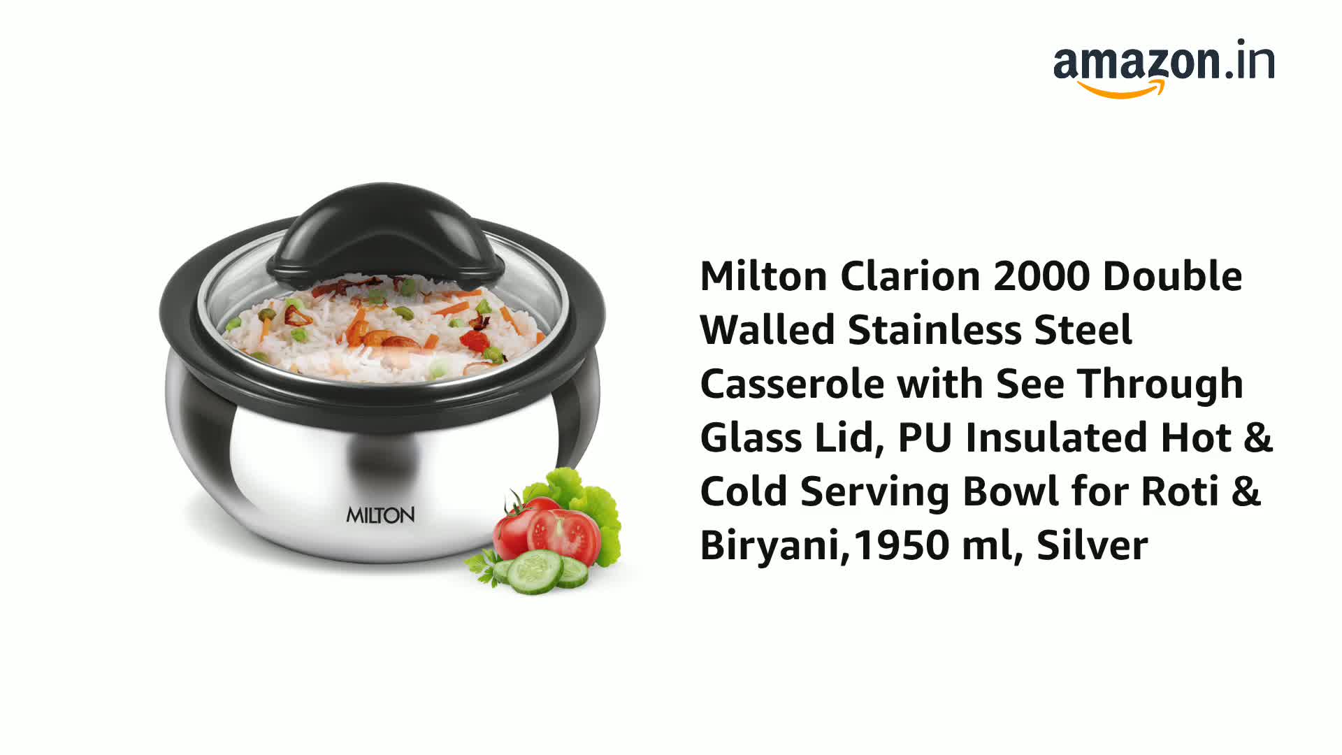 Size:1900 millilitersFeaturing a range of casseroles that are engineered in double-walled steel to keep food Hot and fresh for hours. These insulated casseroles come with a transparent glass lid that allows you to view its contents. Made of outer and inner stainless steel walls it is simple to use and elegantly designed. Families across the country love to sit down for a family dinner and enjoy a good food together for home cooked meal. A popular dinner dish that is easy to make and so versatile is the casserole. At the heart of this delicious meal is the vessel in which it made the casserole dish.