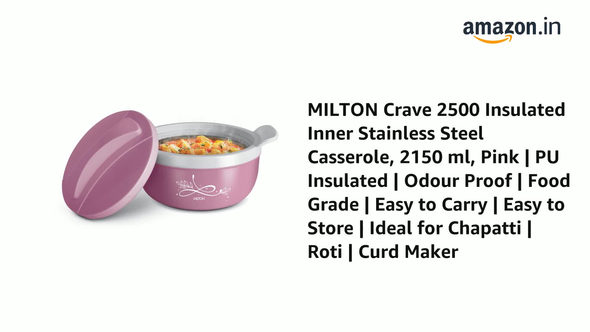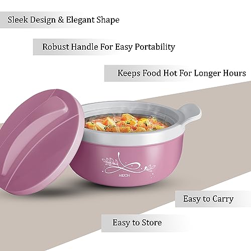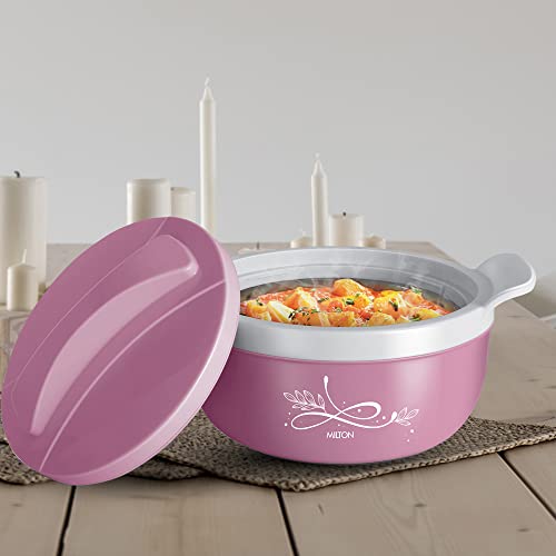MILTON Crave 2500 Inner Stainless Steel Serving Casserole with Lid, PU Insulated Kitchen Hot Pot, Keeps Food hot & Fresh for Roti, Biryani, 2150 ml, Pink