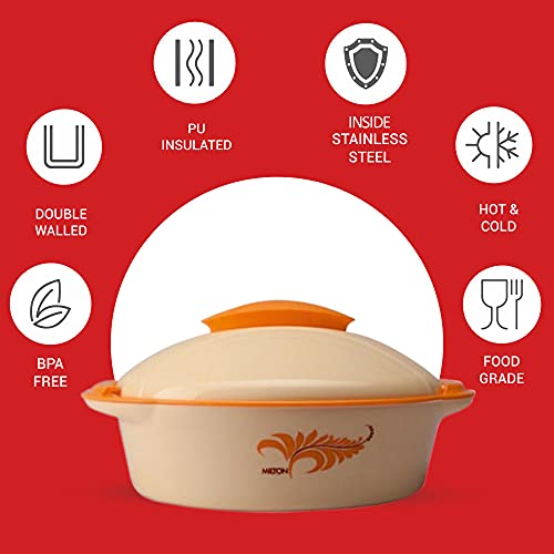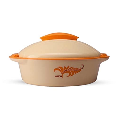 Color Name:OrangeMilton's Crisp Dlx casseroles are double-walled with a stainless-steel inner surface to keep food hot and fresh-tasting for hours. Featuring a smart dual-tone outer finish with attractive graphics this insulated container also has a plastic roti basket inside.