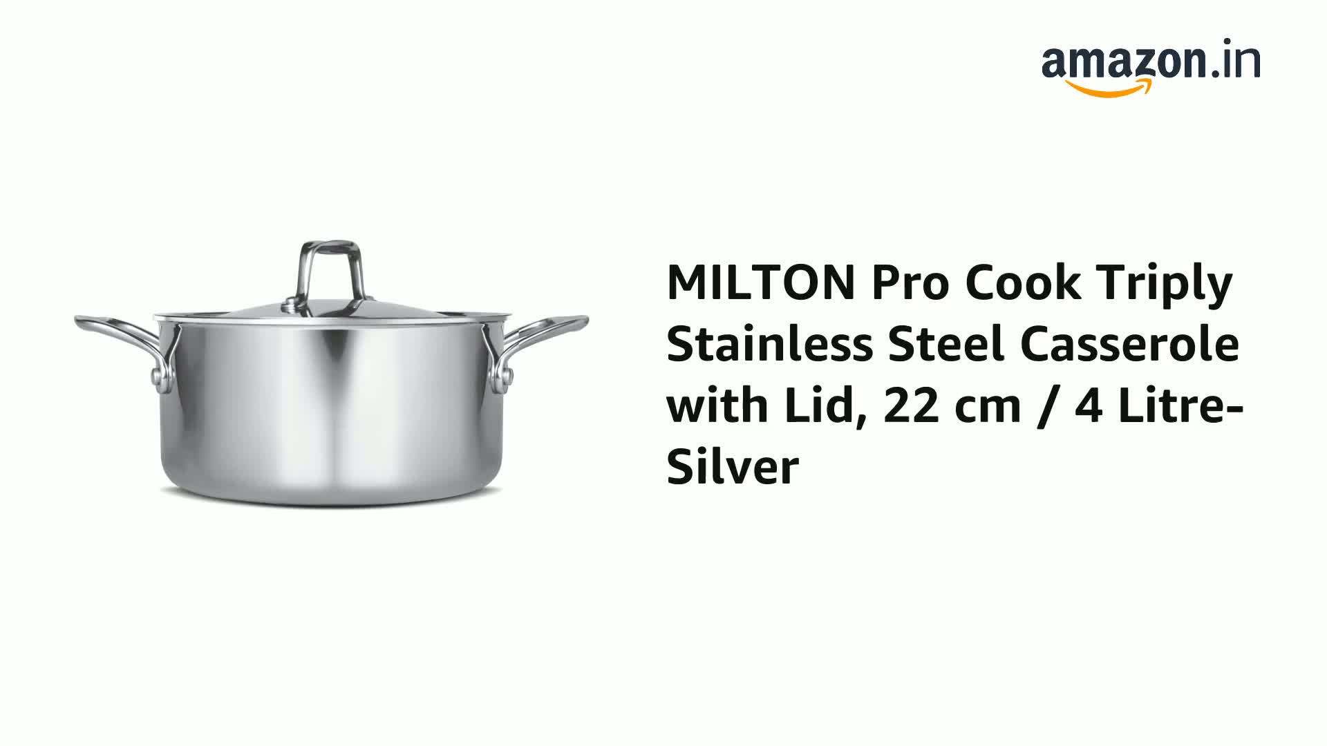 MILTON Pro Cook Triply Stainless Steel Casserole with Lid 22 cm / 4 Litre- Silver