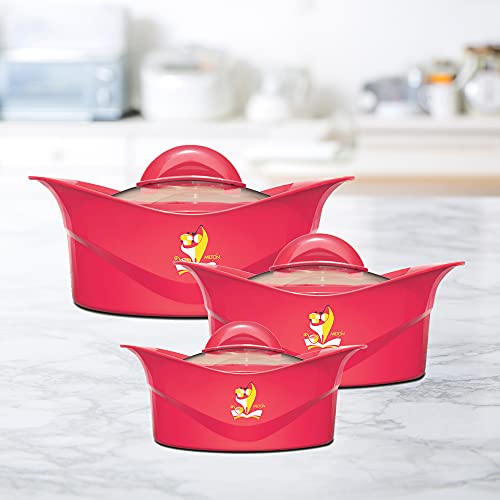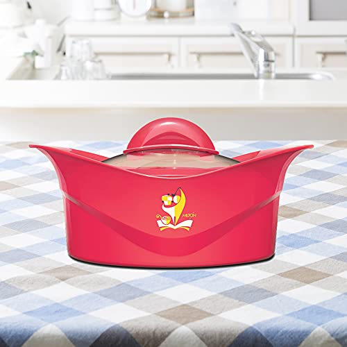 Color Name:RedKey Features: 430 ml 850 ml and 1400 ml capacity Keeps food hot and fresh for long hours Glass lid with locking mechanism See through unbreakable lid Designed with an inner stainless steel containerMilton Regalia Glass Lid Casserole are uniquely designed with locking mechanism inorder to keep your food hot and fresh for long hours. It is designed with an inner stainless steel container. It has an unbreakable see through lid so that you know whats inside the casserole without opening it.