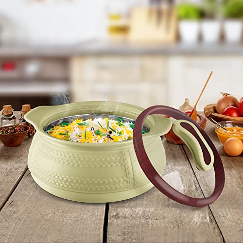 Weave casseroles feature a lockable glass-lid allowing you to see the contents inside. This double-walled casserole comes with stainless-steel inners to keep food hot and fresh for hours. Its sleek and attractive design (vacuum metallized / wooden prints) make it a must have to enhance your dining Decor. Families across the country love to sit down for a family dinner and enjoy a good home cooked meal. A popular dinner dish that is easy to make and so versatile is the casserole. This insulated casserole is simple to use and elegantly designed to take centre-stage at your dining table. It can be used for Salads chapatti Roti and it can also be used as a curd maker as Ice-packs to store ice-cream custard. The perfect serving casserole for any special occasions or household like birthday or anniversary parties holiday picnic. This Product Is Under 1 Year Warranty From The Date Of Retail Purchase Against Any Manufacturing Defects In Material And Workmanship. The Warranty Does Not Cover Damages Resulting From Accidents Mishandling Or Tampering With The Mechanism. Warranty Valid Against Producing Original Bill Endorsed By Seller.