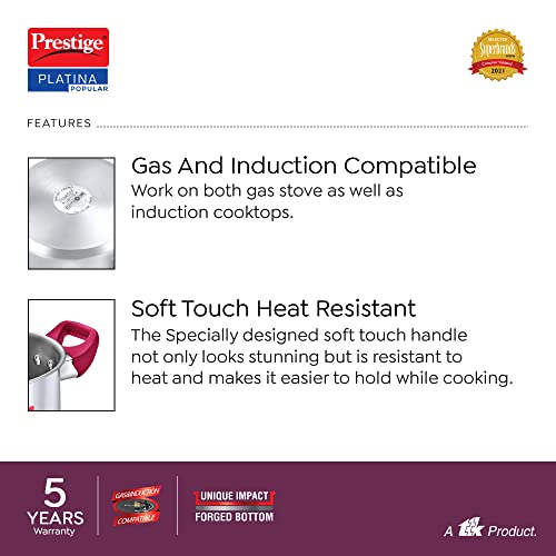 1 x Prestige Platina Popular Stainless Steel Gas and Induction Compatible Casserole with Glass Lid 180 mm 2 Litre