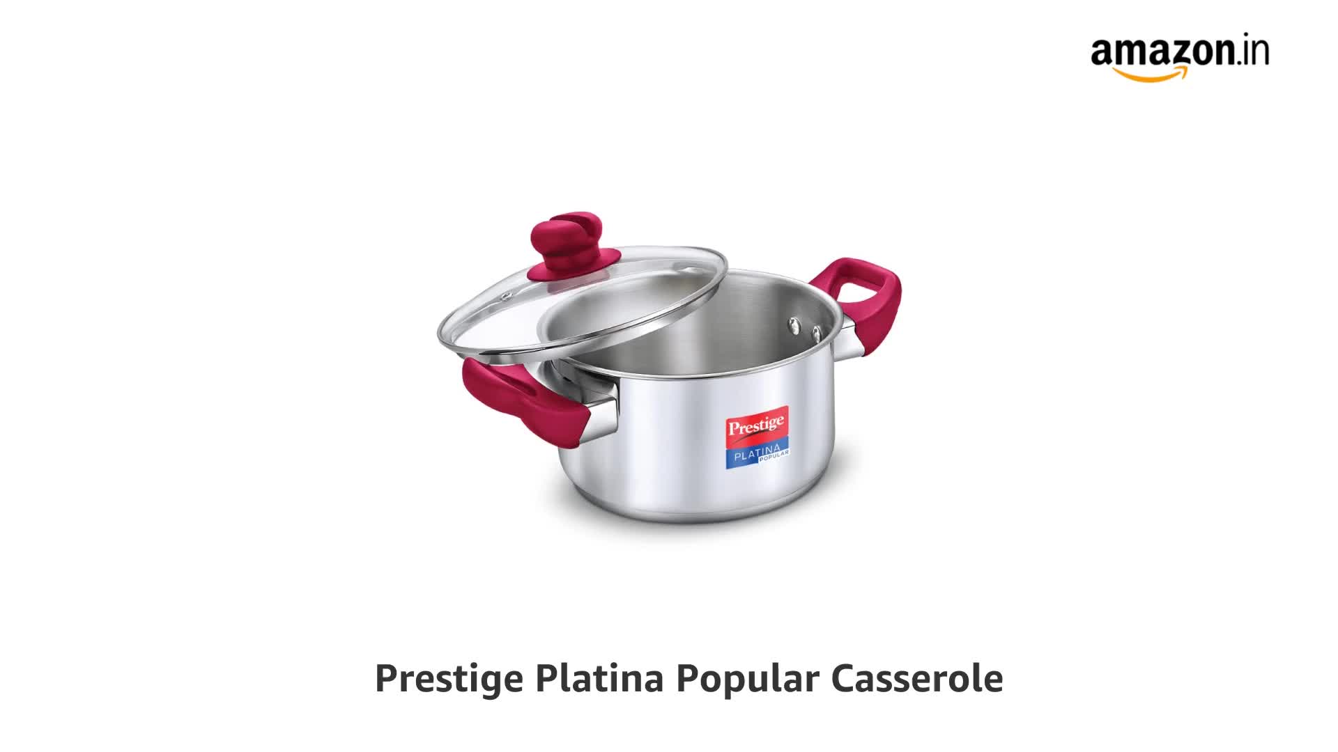 1 x Prestige Platina Popular Stainless Steel Gas and Induction Compatible Casserole with Glass Lid 200 mm 3 Litre