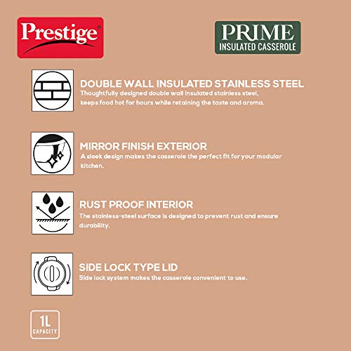 1 x Prestige Prime Stainless Steel Insulated Casserole 1 L