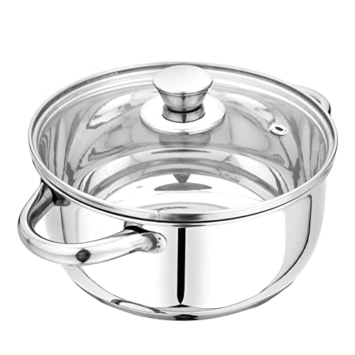 Pristine Stainless Steel Tri Ply Induction Base Cook n Serve Casserole with Glass Lid, 14cm, (1L, Silver)