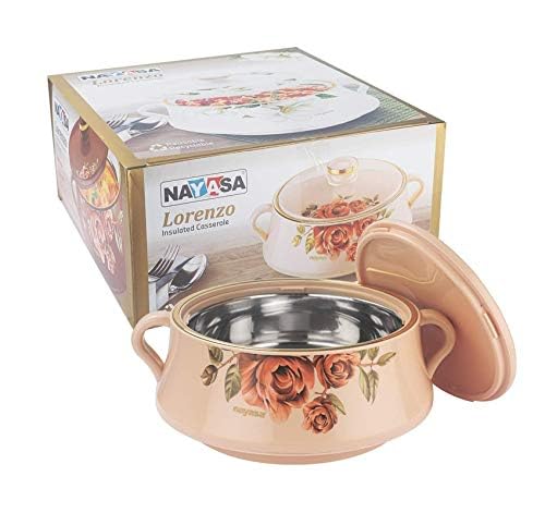 Lorenzo caserole is made of stainless steel ( inner side ) & Plastic ( outer side ) .Its PU insulation quality keeps the content warm for long hours. Package Content 2 piece Nayasa Lorenzo casserole . Its elegant design & finish adds beuty to on your dinning table . It is useful for serving and keeping dishesh .