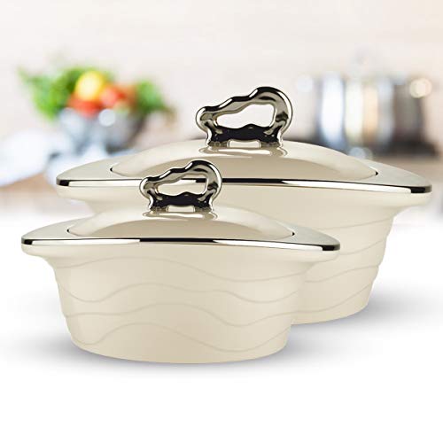 Trueware Zinna casserole meal set is made out of best materials with exquisite chromed top break safe complete product. It makes lock cover lid. The internal body is made of high grade stainless steel. The plastic external body is shaped out of virgin food grade plastic (BPA free & FDA Free). With an exceptional chrome finish it gives a modern look which is one of the standout basic in your kitchen assortments. We can purchase this item for high utility and gifting. Washing Instructions : Use mild detergent for washing. Dry thoroughly after washing. Clean the outer body with sponge instead of brush or scrub. General care : Do not attempt to separate the inner stainless steel container from its main body. Do not place the casserole over or in close proximity of fire. Tips for Optimum Use: Prior to storing hot food stuff pre-condition the casserole by pouring a little hot water rinse and empty contents. Similarly for cold articles rinse with cold water. Transfer the food into the casserole as soon as it is prepared. Store to full capacity. Do not use in Microwave ? Special P.U. Insulates keeps contents warm for many hours. ? Mirrior Finish Stainless Steel Bowl ? Aesthetically Designed Outer Body & Lid Disclaimer : Do not use any kind of hard substance or scruber to clean the inner or outer body of Casserole.