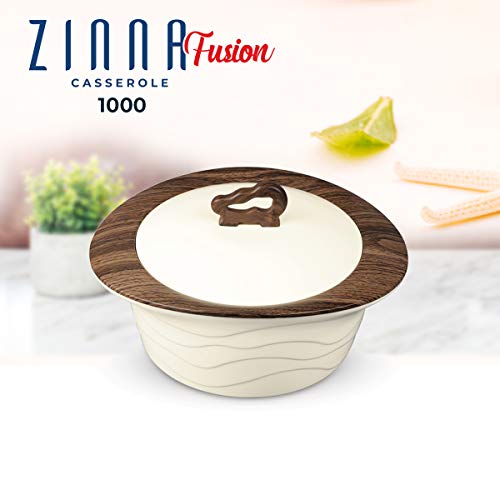 Trueware Zinna Fusion casserole meal set is made out of best materials with exquisite chromed top break safe complete product. It makes lock cover lid. The internal body is made of high grade stainless steel. The plastic external body is shaped out of virgin food grade plastic (BPA free & FDA Free). With an exceptional chrome finish it gives a modern look which is one of the standout basic in your kitchen assortments. We can purchase this item for high utility and gifting. Washing Instructions: Use mild detergent for washing. Dry thoroughly after washing. Clean the outer body with sponge instead of brush or scrub. General care: Do not attempt to separate the inner stainless steel container from its main body. Do not place the casserole over or in close proximity of fire. Tips for Optimum Use: Prior to storing hot food stuff pre-condition the casserole by pouring a little hot water rinse and empty contents. Similarly for cold articles rinse with cold water. Transfer the food into the casserole as soon as it is prepared. Store to full capacity. Do not use in Microwave. Special P.U. Insulates keeps contents warm for many hours. Mirror Finish Stainless Steel Bowl. Aesthetically Designed Outer Body & Lid. Disclaimer: Do not use any kind of hard substance or scrubber to clean the inner or outer body of Casserole.