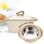 Trueware Zinna Fusion casserole meal set is made out of best materials with exquisite chromed top break safe complete product. It makes lock cover lid. The internal body is made of high grade stainless steel. The plastic external body is shaped out of virgin food grade plastic (BPA free & FDA Free). With an exceptional chrome finish it gives a modern look which is one of the standout basic in your kitchen assortments. We can purchase this item for high utility and gifting. Washing Instructions: Use mild detergent for washing. Dry thoroughly after washing. Clean the outer body with sponge instead of brush or scrub. General care: Do not attempt to separate the inner stainless steel container from its main body. Do not place the casserole over or in close proximity of fire. Tips for Optimum Use: Prior to storing hot food stuff pre-condition the casserole by pouring a little hot water rinse and empty contents. Similarly for cold articles rinse with cold water. Transfer the food into the casserole as soon as it is prepared. Store to full capacity. Do not use in Microwave. Special P.U. Insulates keeps contents warm for many hours. Mirror Finish Stainless Steel Bowl. Aesthetically Designed Outer Body & Lid. Disclaimer: Do not use any kind of hard substance or scrubber to clean the inner or outer body of Casserole.