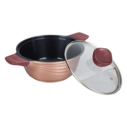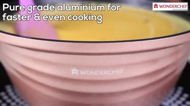 Made from pure grade aluminium for faster and even cooking Die-cast pans retain heat better never deform and hence make ideal cook & serve casserole. Silicon Handles for better grip and classic design Induction compatible this is perfect for use on all heating sources available With Meta Tuff non-stick coating-finest quality PFOA-free healthy for daily use this Rosetta smart cook & serve casserole comes in a vibrant color and classy design that looks smart in the kitchen & elegant on the dining table. A reflection of sophistication this multi-use casserole is a favorite gifting choice of our customers. Wonderchef products are inspired by Italian Design and adhere to German Standards. They are covered by a Reliable Warranty T&C apply